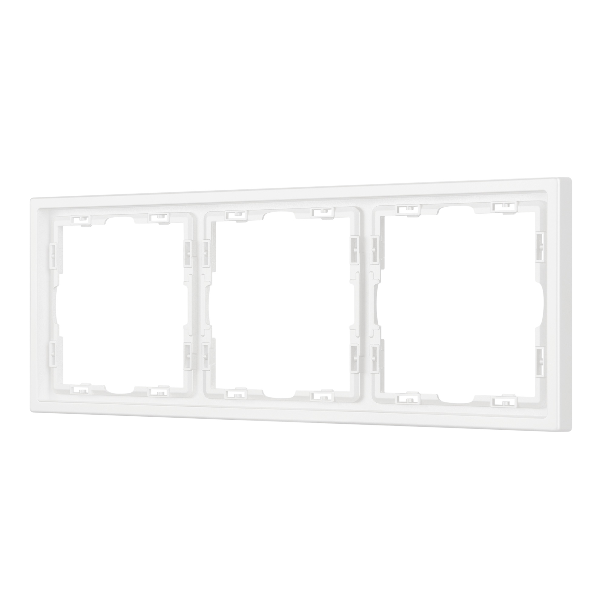 Рамка пластиковая на 3 поста, под встраиваемый механизм. Цвет - белый, с Soft-Touch покрытием. Среднего уровня герметичности IP20. Ориентация монтажа горизонтальная. Габаритные размеры: длина 223 мм, ширина 81 мм, высота 8,55 мм. Гарантийный срок 12 мес.