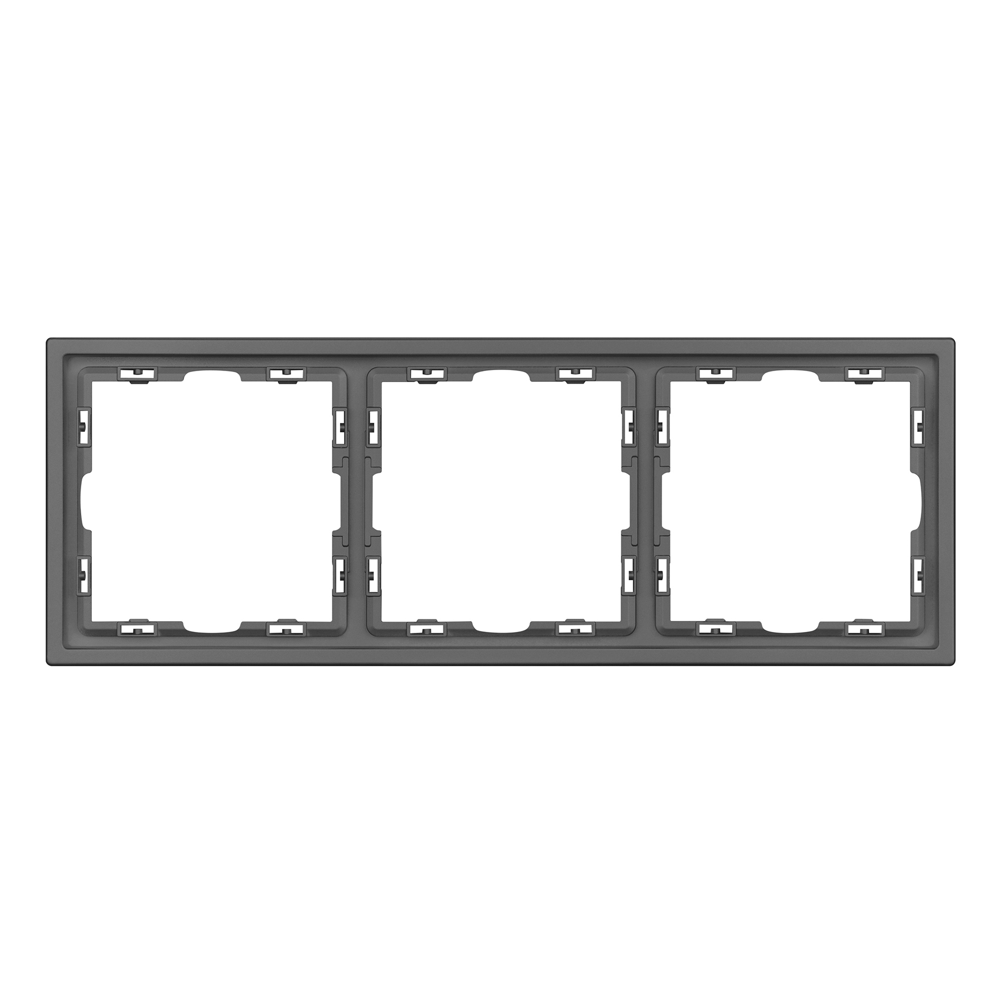 Рамка пластиковая на 3 поста, под встраиваемый механизм. Цвет - серый, с Soft-Touch покрытием. Среднего уровня герметичности IP20. Ориентация монтажа горизонтальная. Габаритные размеры: длина 223 мм, ширина 81 мм, высота 8.55 мм. Гарантийный срок 12 мес.