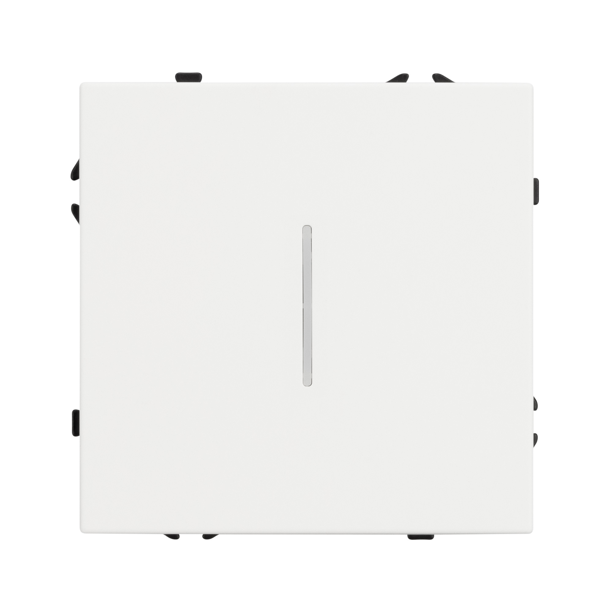 Механизм выключателя света клавишный на 1 пост 1 клавиша (непроходной). Цвет - белый, с Soft-Touch покрытием. Клавиша имеют активную LED подсветку - cинего свечения. Без фронтальной рамки. Уровень пылевлагозащиты IP20. Выключатель устанавливается в стандартный круглый подрозетник круглого сечения диаметром 60мм. Габаритные размеры: длина 70 мм, ширина 70 мм, высота 52 мм. Гарантийный срок 10 лет.