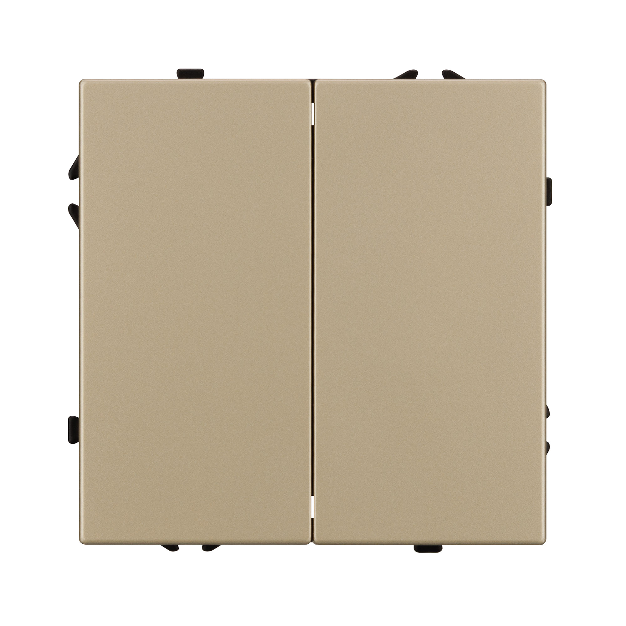 Механизм выключателя света клавишный на 1 пост 2 клавиши (проходной). Цвет - золотой, с Soft-Touch покрытием. Без фронтальной рамки. Уровень пылевлагозащиты IP20. Выключатель устанавливается в стандартный круглый подрозетник круглого сечения диаметром 60мм. Габаритные размеры: длина 71 мм, ширина 71 мм, высота 52 мм. Гарантийный срок 10 лет.