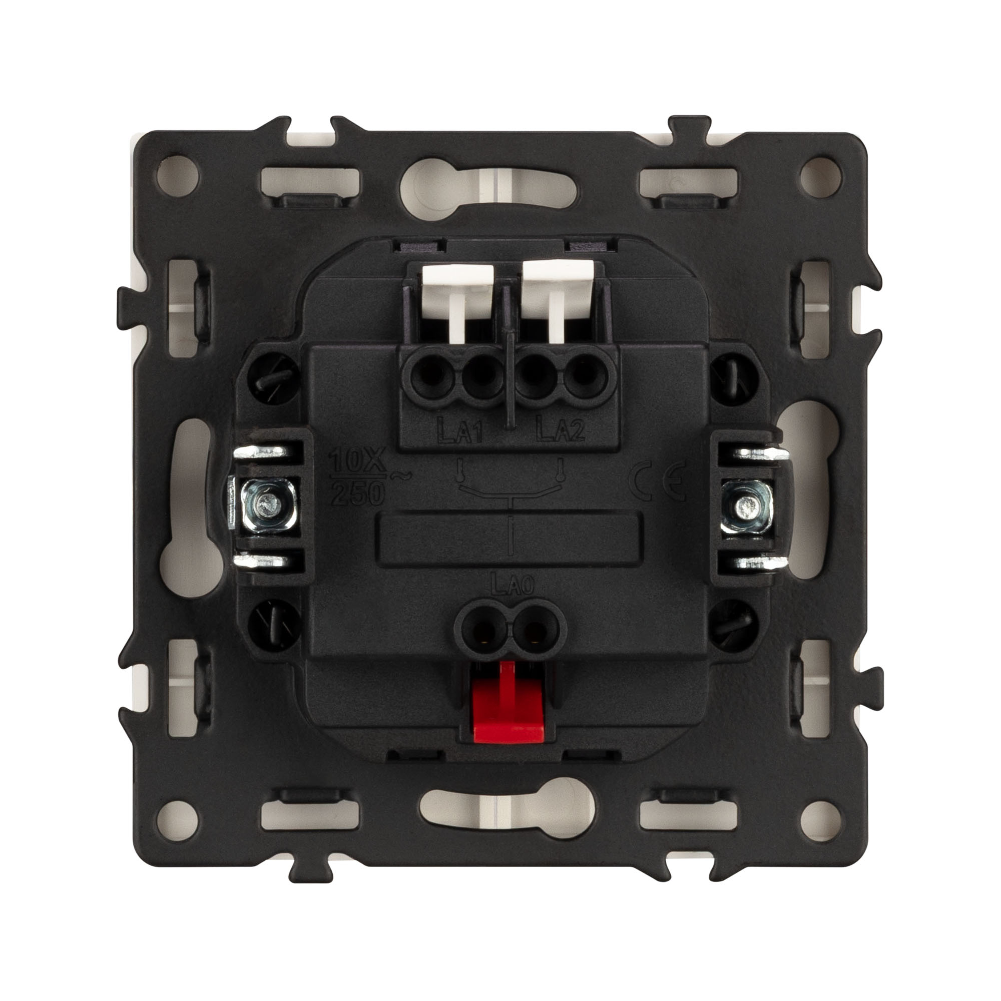 Соединение посредством быстрозажимных контактов, позволяет надежно подсоединить механизм выключателя к питающим элементам, минимизируя затраченное время на монтаж. А усиленные распорные лапки двойного захвата надежно фиксируют механизм в установочном подрозетнике круглого сечения диаметром 60мм.