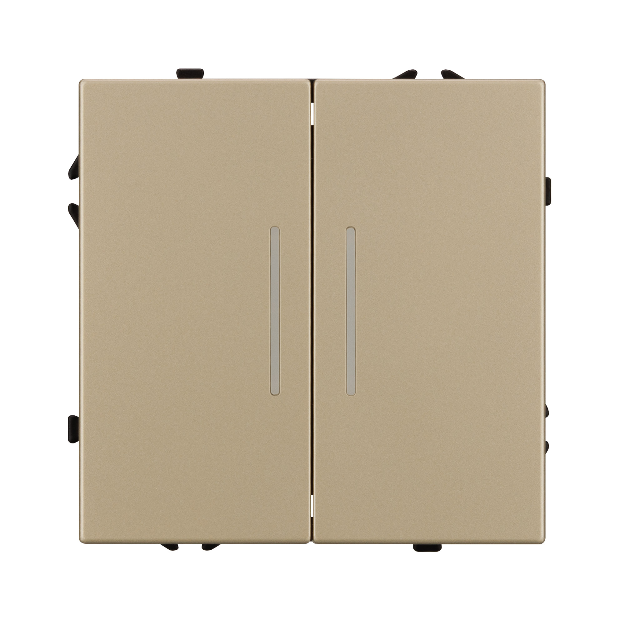 Механизм выключателя света клавишный на 1 пост 2 клавиши (проходной). Цвет - золотой, с Soft-Touch покрытием. Клавиша имеют активную LED подсветку - cинего свечения. Без фронтальной рамки. Уровень пылевлагозащиты IP20. Выключатель устанавливается в стандартный круглый подрозетник круглого сечения диаметром 60мм. Габаритные размеры: длина 71 мм, ширина 71 мм, высота 52 мм. Гарантийный срок 10 лет.
