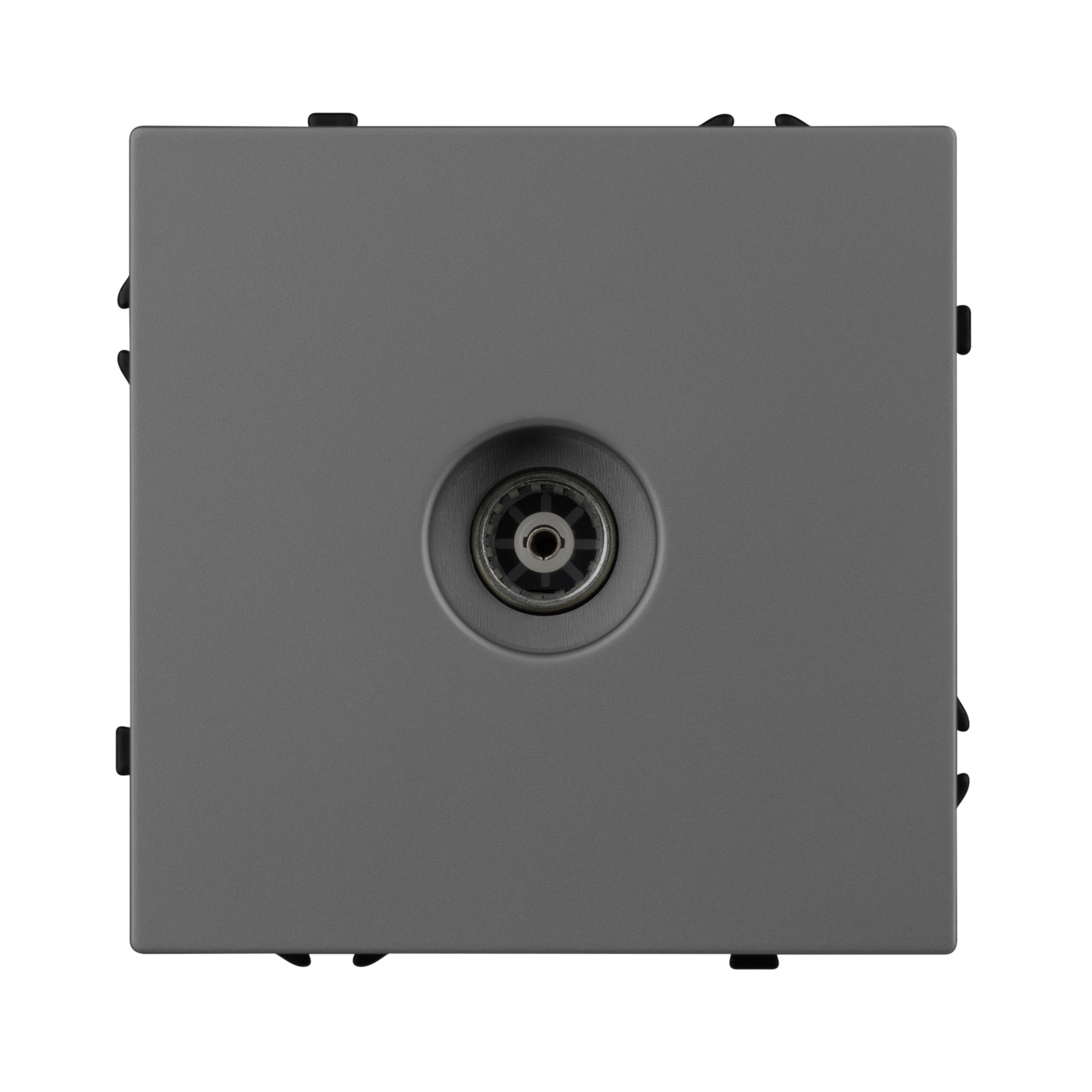 Механизм ТВ-розетки на 1 пост (оконечная). Цвет - серый базальт, с Soft-Touch покрытием. Без фронтальной рамки. Уровень пылевлагозащиты IP20. Выходной сигнал от 5Гц до 1кГц. Розетка устанавливается в стандартный подрозетник круглого сечения диаметром 60мм. Габаритные размеры: длина 71 мм, ширина 71 мм, высота 42 мм. Гарантийный срок 10 лет.