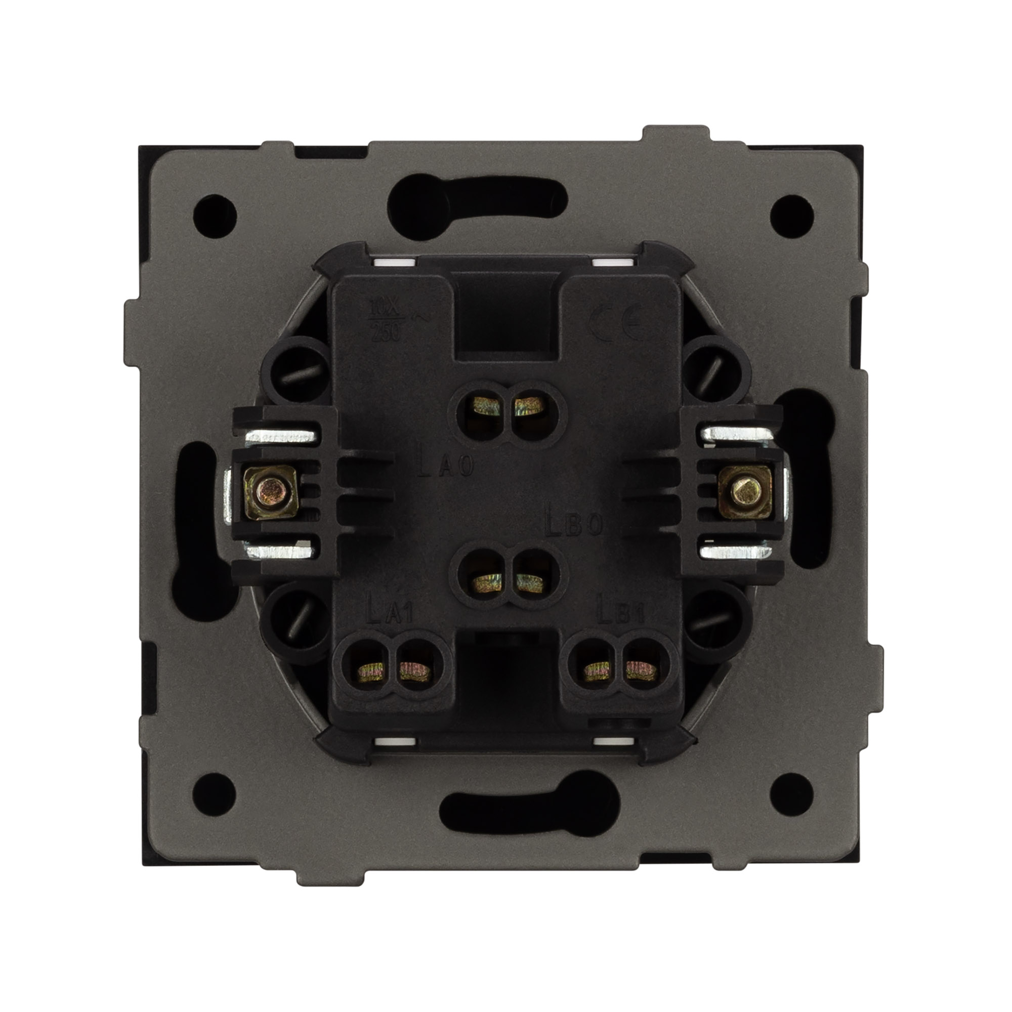 Механизм выключателя света совместим с рамками серии TENDO, создает утонченный минималистичный вид. Скрытый тип монтажа позволяет гармонично встроить в интерьер любого современного дизайн-проекта. Видимая часть механизма выполнена из высококачественного пластика серого цвета и имеет Soft-Touch покрытие, что придает изделию приятные тактильные ощущения и стильный внешний вид. Контактная часть присоединяется при помощи винтовых зажимов, позволяя надежно подсоединить механизм выключателя к питающим элементам. А усиленные распорные лапки двойного захвата надежно фиксируют механизм в установочном подрозетнике круглого сечения диаметром 60мм. Суппорт окрашен порошковой краской и выполнен из металла толщиной 1,5мм, что обеспечивает безопасность и уверенность в установке. На каждой стороне суппорта размещены фиксирующие элементы, позволяющие комбинировать механизмы в системы до 5 шт как горизонтально, так и вертикально.