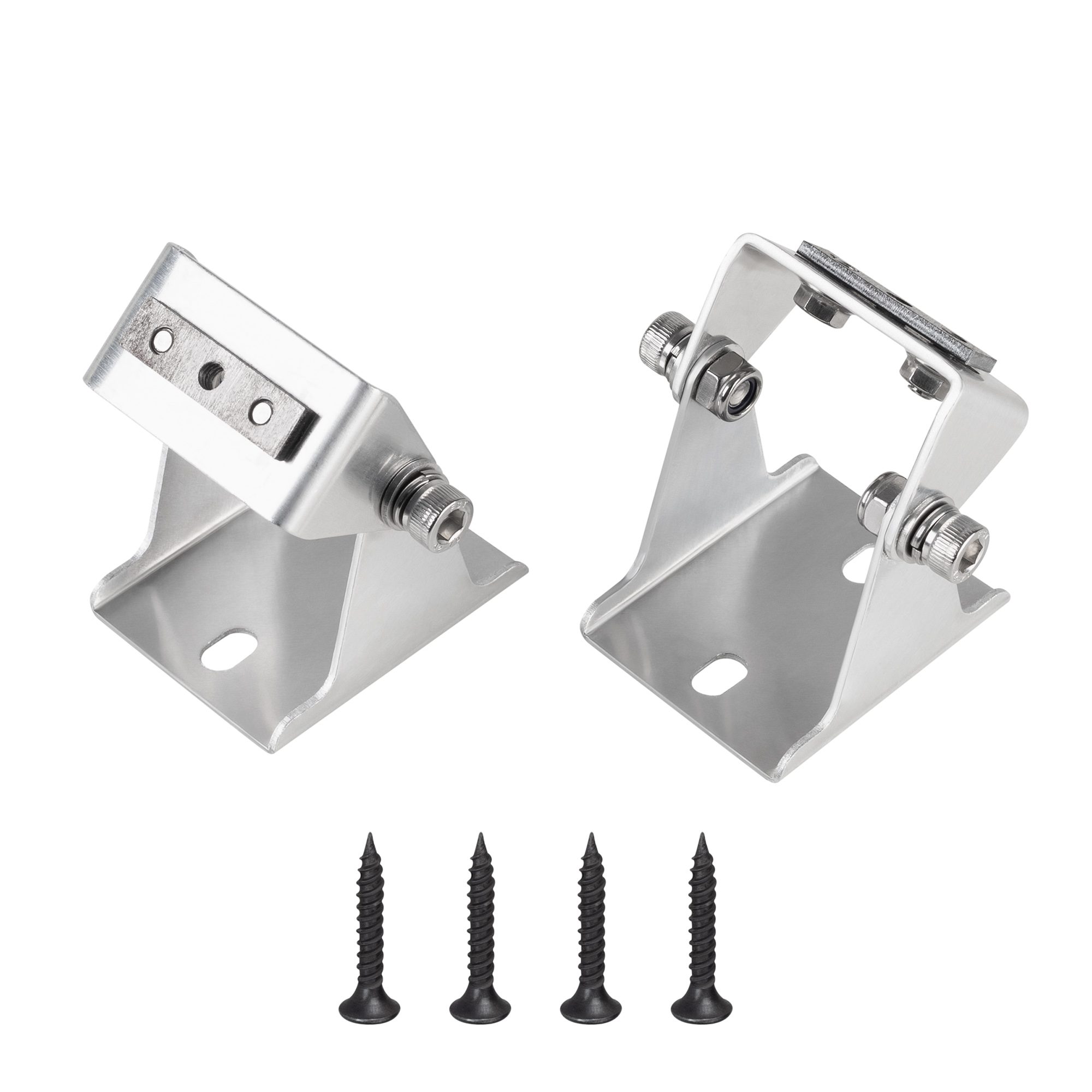 Комплект поворотных держателей для профиля SL-LINE. Позволяет менять положение профиля и фиксировать под любым углом в диапазоне до 220 градусов (в зависимости от модели профиля и места установки). В комплекте: держатель поворотный - 2 шт., шуруп - 4 шт. Материал - сталь. Цена за комплект.