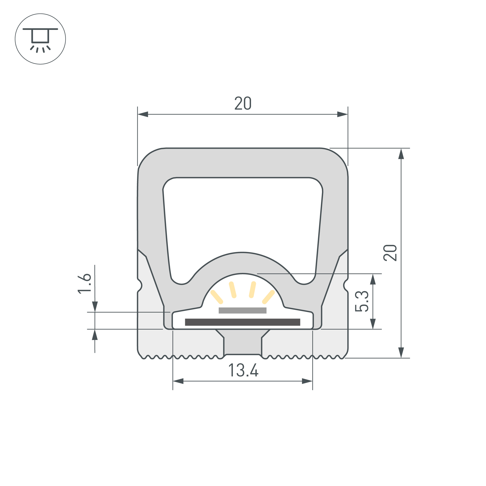 Цельнолитой силиконовый гибкий профиль белого цвета. Габаритные размеры профиля составляют 20000 мм в длину, 20 мм в ширину и 20 мм в высоту. Вертикальный изгиб TOP, минимальный радиус изгиба 60 мм. Угол излучения 140°. Для удобства установки ленты по всей длине профиля протянута нить. Площадка для установки светодиодных лент позволяет использовать ленту шириной от 10 до 12 мм, высотой до 4 мм и мощностью до 10 Вт/м. Это обеспечивает гибкость в выборе светодиодных лент и создает потрясающие световые решения. Для установки во влажных помещениях необходима герметизация при помощи двухкомпонентного эпоксидного герметика. Класс пылевлагозащиты – IP65 (при соблюдении технологии герметизации). Этот продукт представляет отличное решение для создания современных световых проектов и обеспечивает надежную и стильную основу для установки светодиодов. Для накладного монтажа на 1 метр профиля рекомендуем использовать не менее 3-х держателей. Подходит только для установки внутри помещения