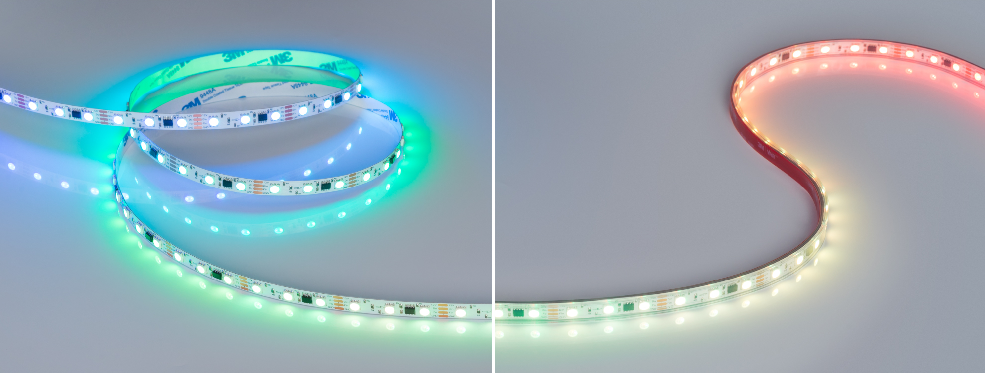 Большой выбор светодиодных лент с управлением по протоколу SPI. Предназначены для создания различных эффектов: от простейшего «бегущего огня» до воспроизведения динамических изображений на мультимедийных экранах. Предусмотрен обход «битого» пикселя.