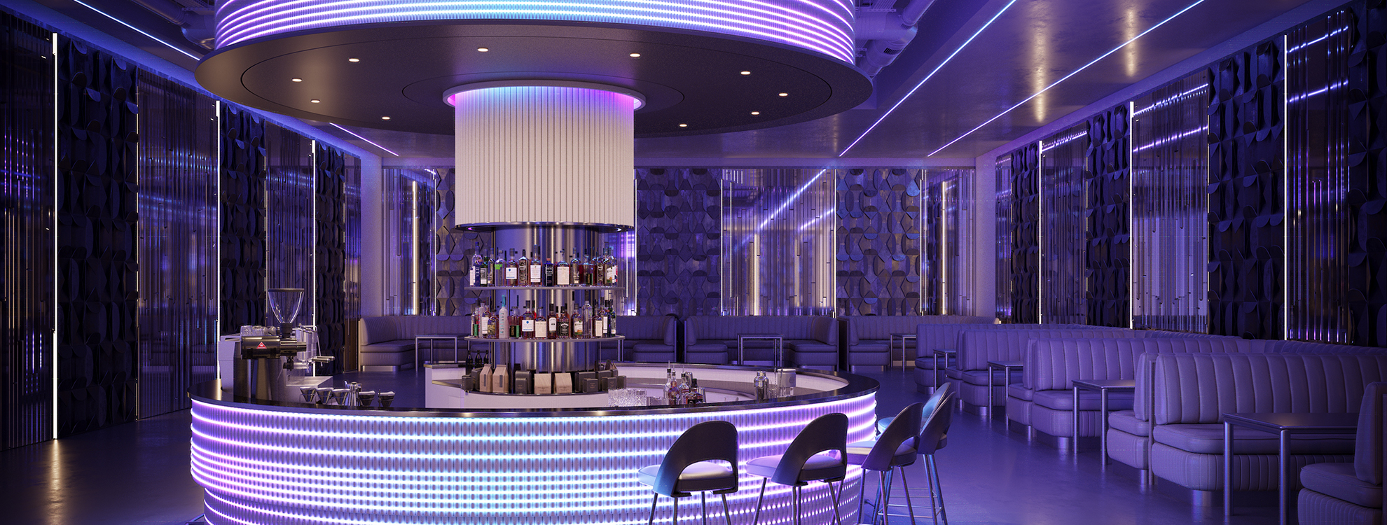 Оформление рекламных вывесок и витрин, создание подсветки в ресторанах, клубах и театрализованных шоу, а также изготовление медиафасадов.
