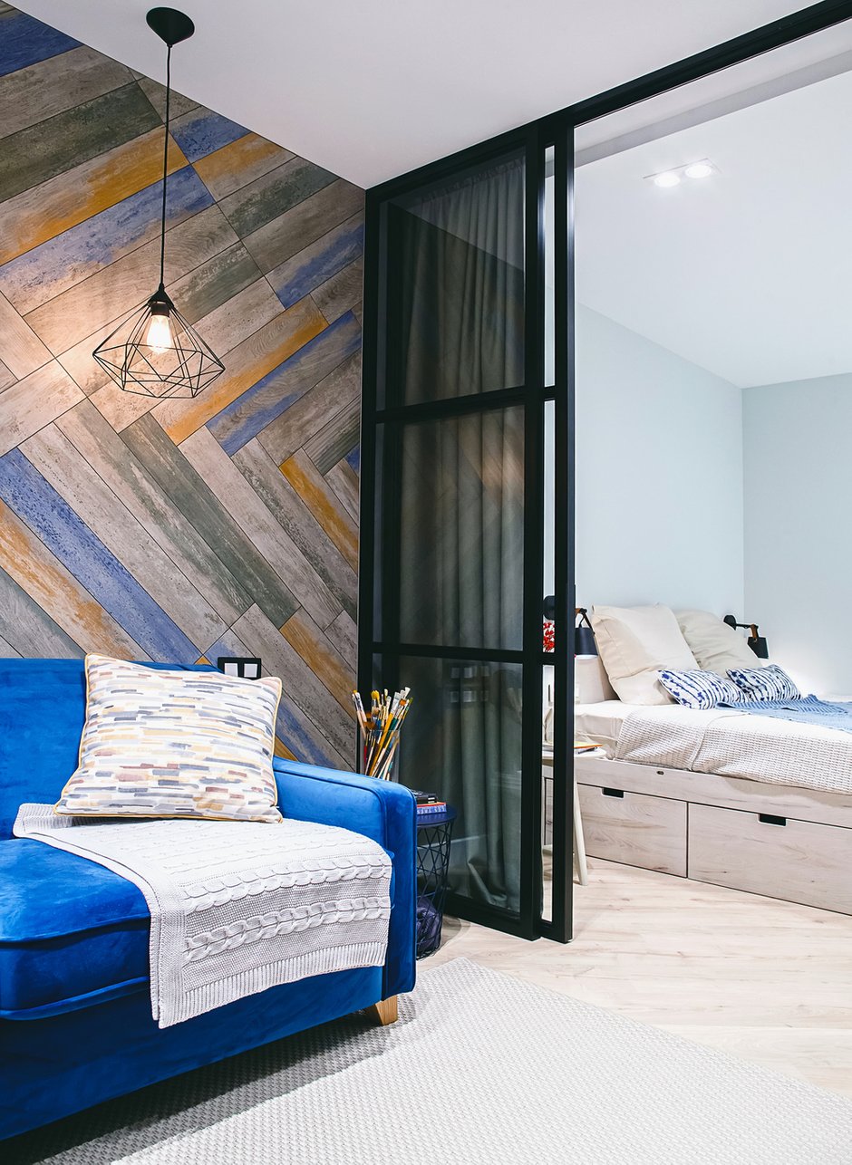 В интересном дизайнерском проекте используется разноплановое освещение, которое гармонично дополняет интерьер. Можно рассмотреть каждую деталь, цветовые акценты и безупречные белоснежные поверхности. Освещение в кухне-гостиной реализовано с помощью мобильных трековых светильников — они могут легко перемещаться вдоль шины и менять угол излучения света. Все светильники имеют высокий индекс цветопередачи (CRI>90). Для подсветки в коридоре использованы встраиваемый профиль и светодиодная лента теплого свечения.