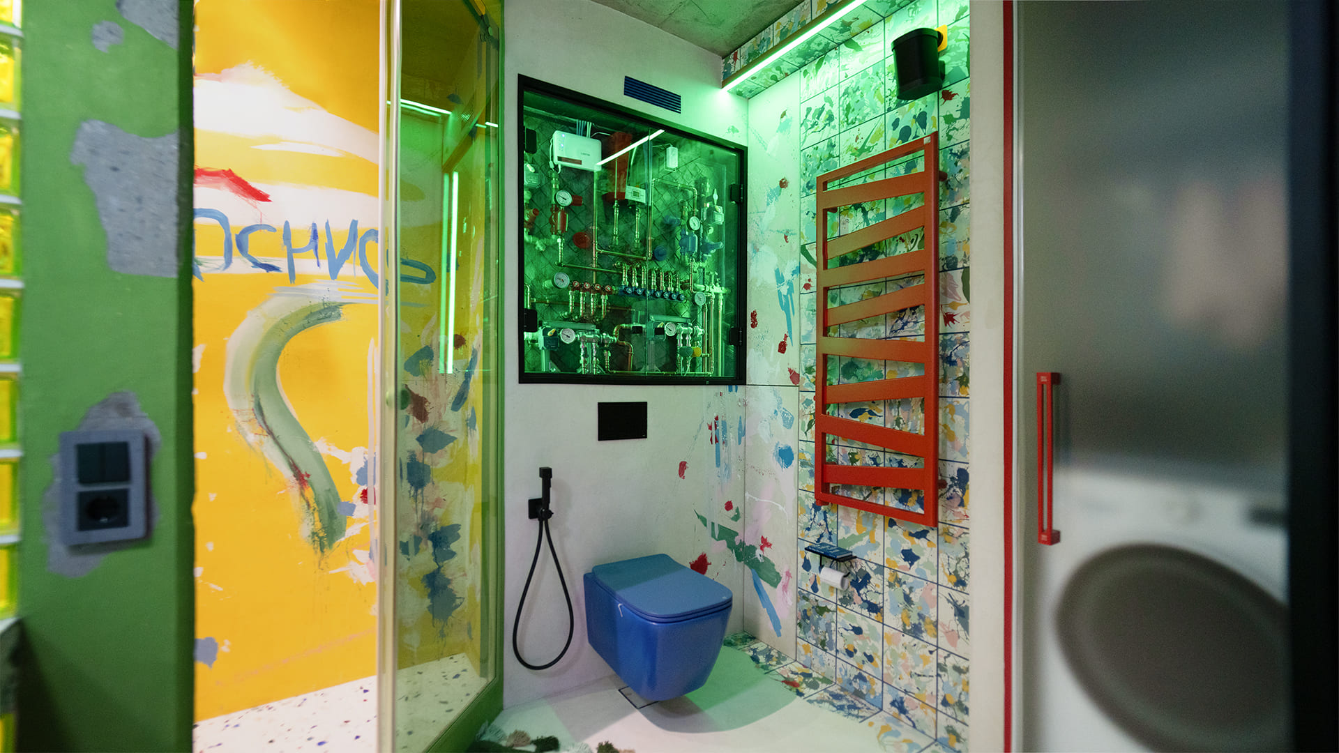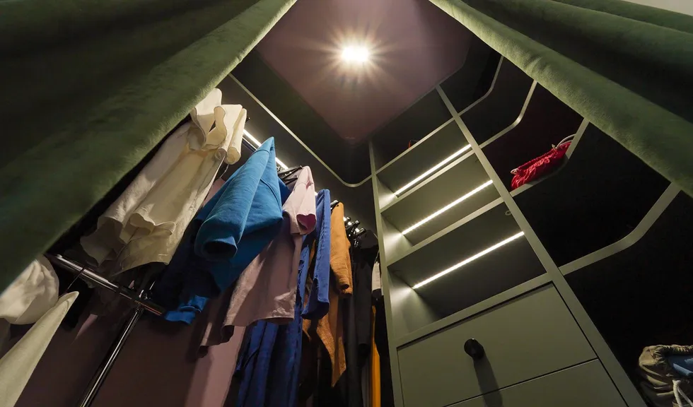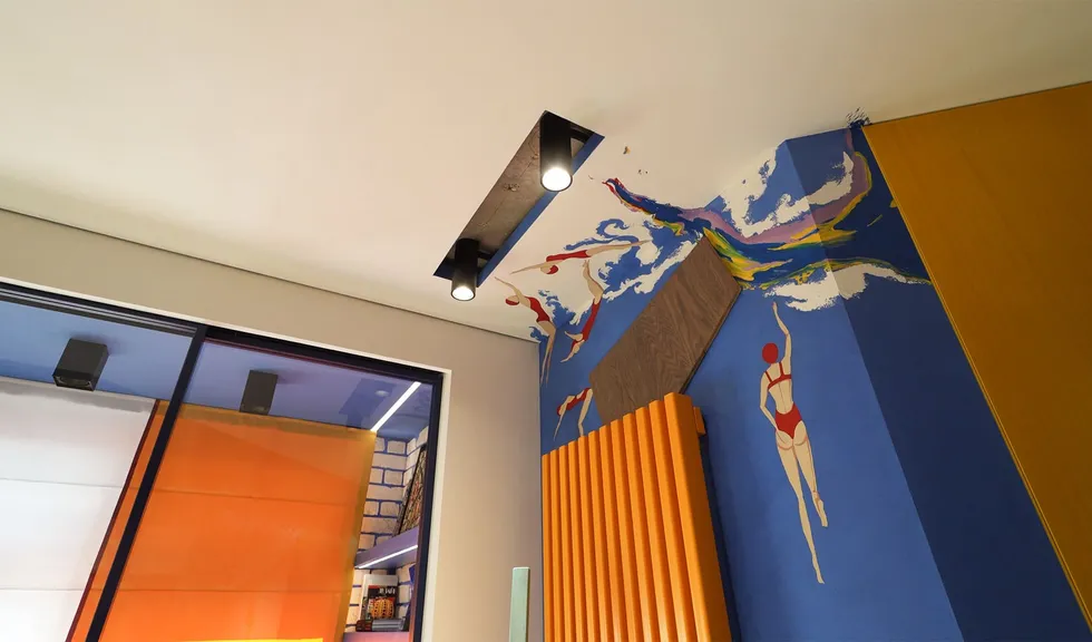 Особое внимание уделено освещению: все светильники в квартире, даже встроенные, оснащены регулируемыми модулями, которые позволяют направлять свет именно туда, где это необходимо. А светодиодные RGBW-ленты добавляют яркие акценты и создают настроение, подчеркивая красоту цветного интерьера.
