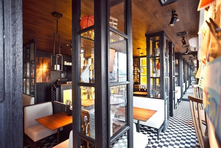 Декоративная и акцентная подсветка бара-ресторана "Solnce" («Солнце») на проспекте Добролюбова в Санкт-Петербурге. В подсветке интерьера использовалось светодиодное оборудование торговой марки