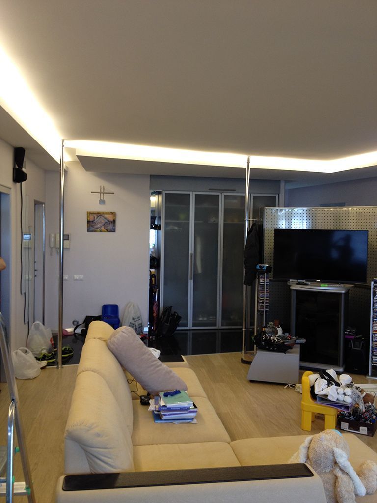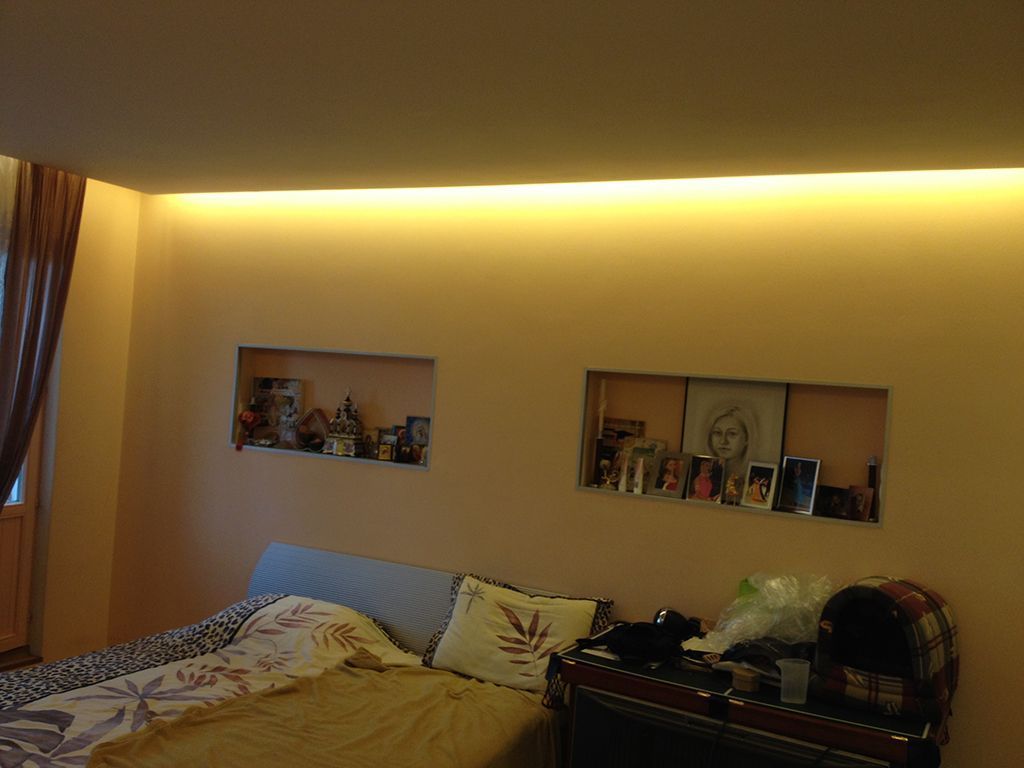 Потолочные ниши в этой квартире были подсвечены при помощи люминесцентных ламп Т8, которые нередко встречаются и сейчас, особенно в офисах. Владельцы квартиры приняли решение заменить этот устаревающий источник света на современный и более экономичный - светодиодную ленту.