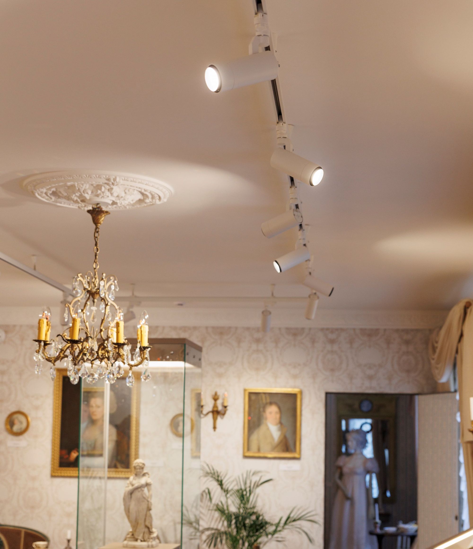 Благодаря свечению с высоким индексом цветопередачи (CRI>90) антикварные экспонаты выглядят естественно. Теплый белый цвет свечения (3000 К) наполняет пространство музея уютной атмосферой, при этом выгодно подчеркивая элементы интерьера из золота и дерева.
