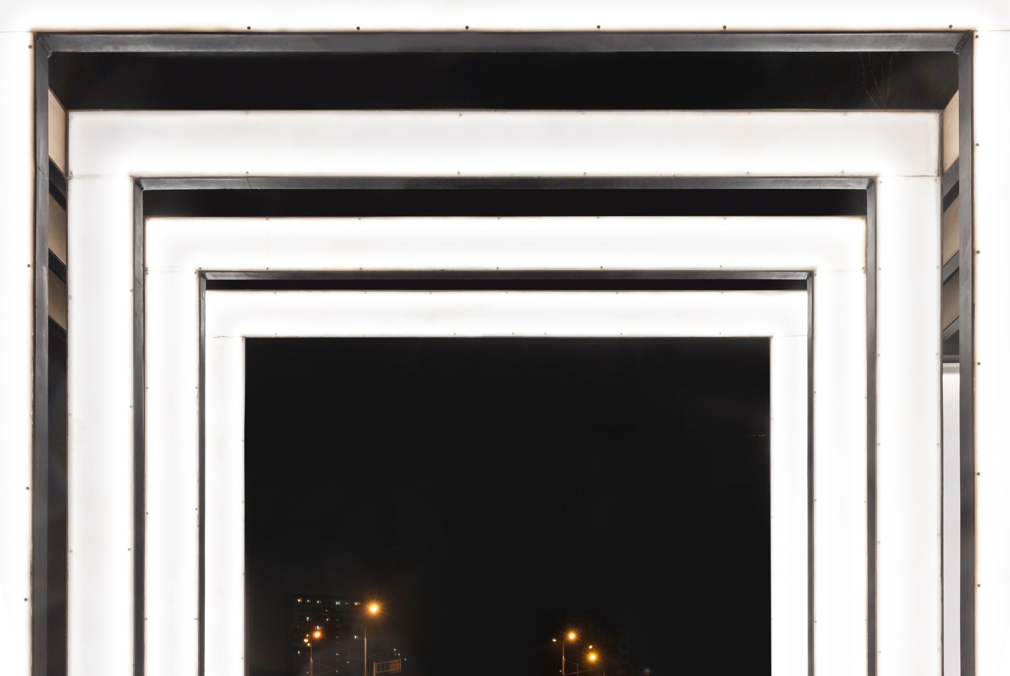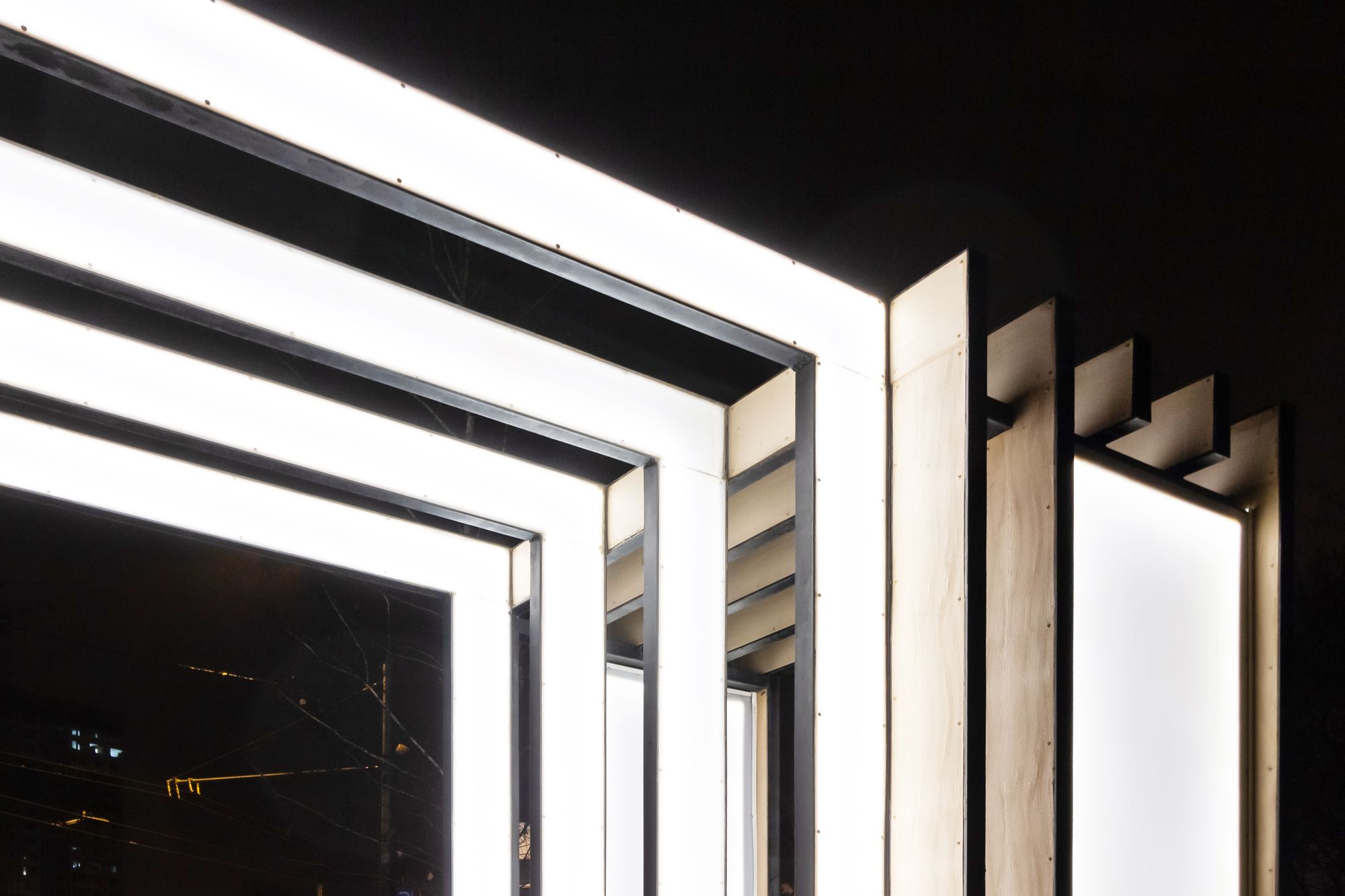 Главной световой композицией является арка при входе в парк, созданная при помощи широких световых полос мягкого дневного свечения. В проекте использованы герметичные светодиодные ленты с высокой степенью пылевлагозащиты (IP65).