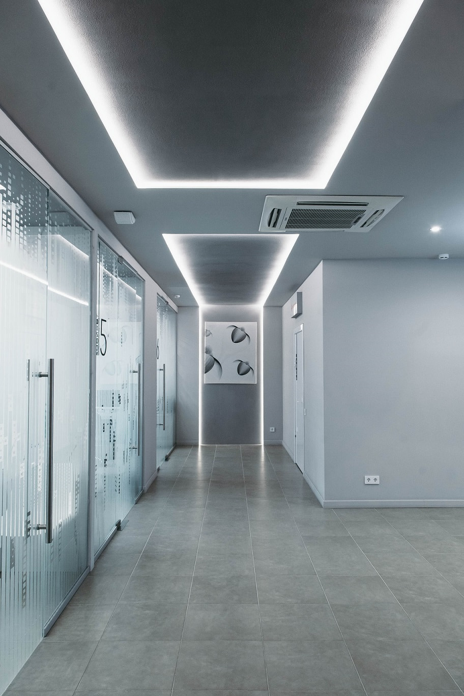 Несмотря на привычный потолок типа «Армстронг», в приемной также были реализованы нестандартные световые идеи. Линейные светильники STARLINE крепятся на несущий профиль и подсвечивают такую привычную геометрию потолка.