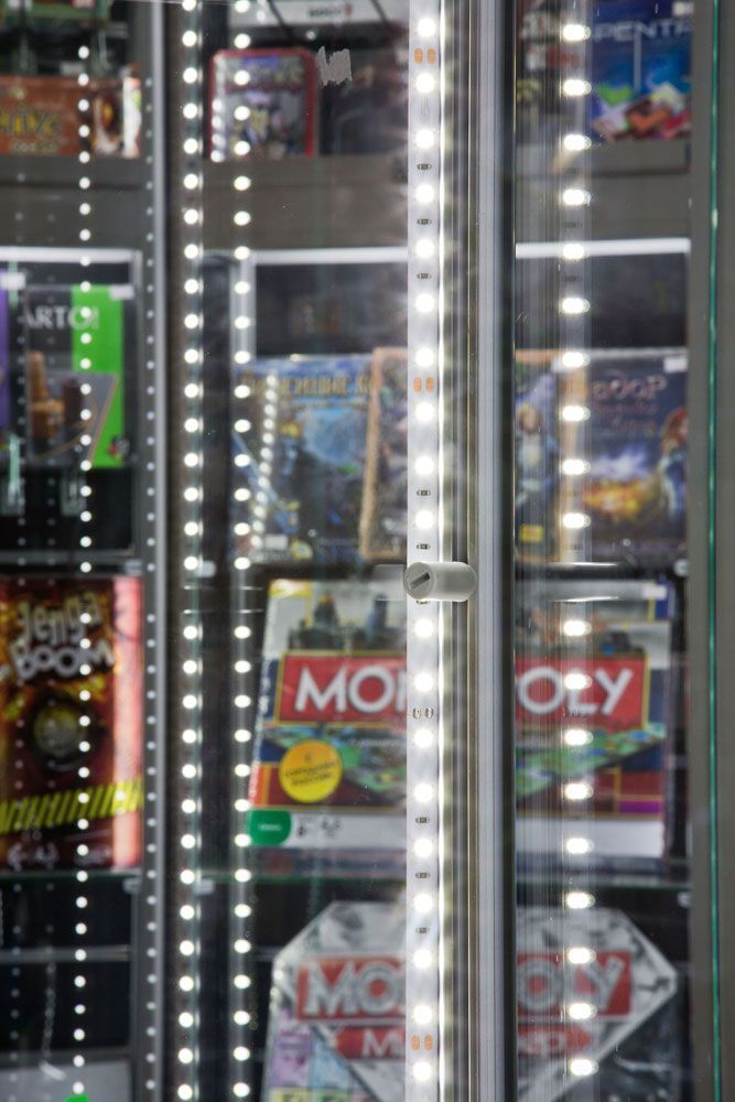 Подсветка стеклянных витрин магазина настольных игр в торговом центре на основе светодиодного оборудования торговой марки arlight®.