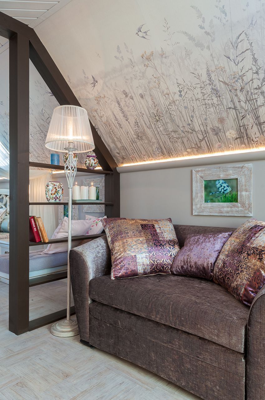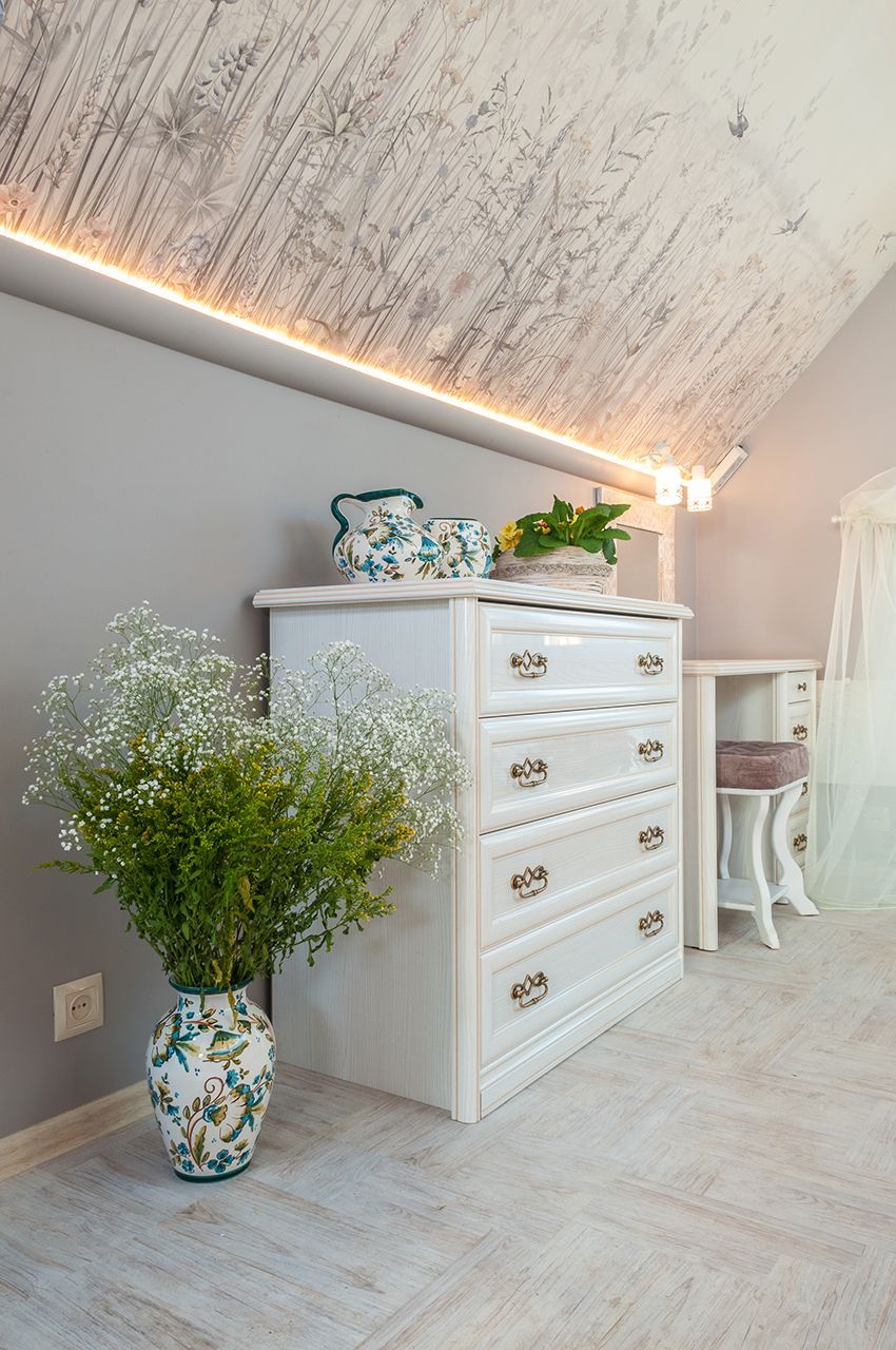 Интерьер спальни выполнен на пересечении двух стилей – классики и лофта. В спальне преобладают светлые тона и натуральные материалы, что создаёт атмосферу лёгкости и уюта. А дополнительный уют и «воздушность» придаёт светодиодная лента Arlight тёплого белого оттенка свечения.